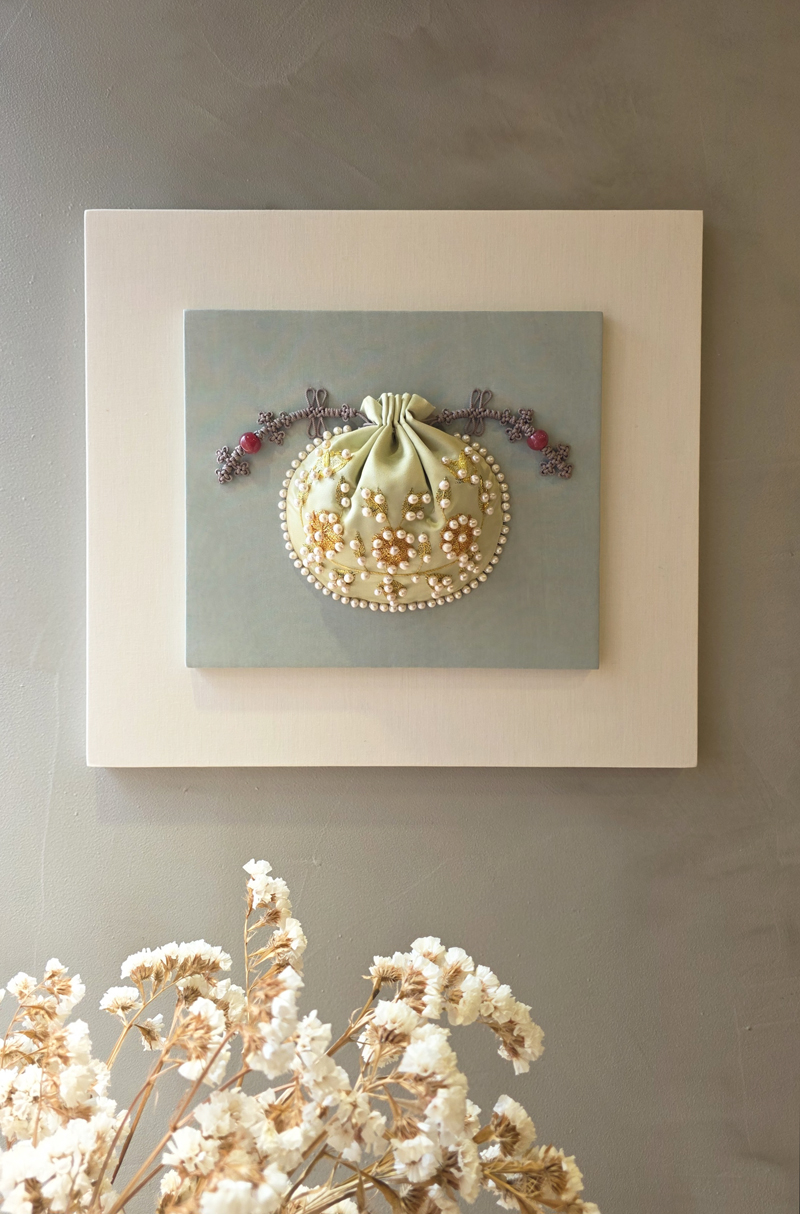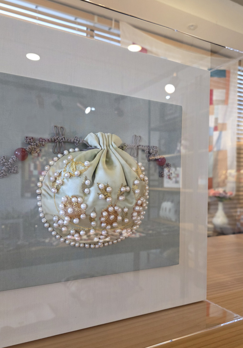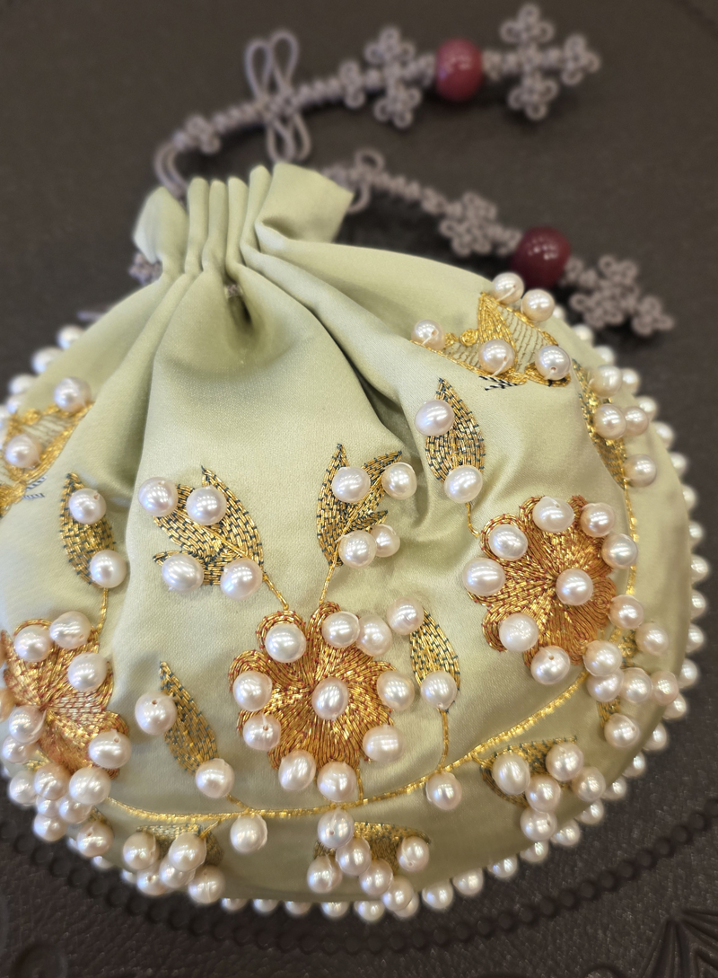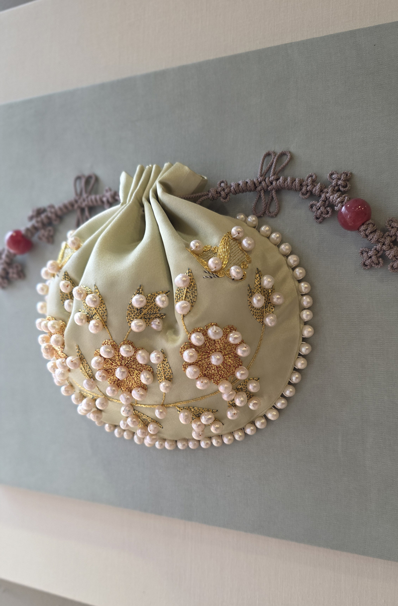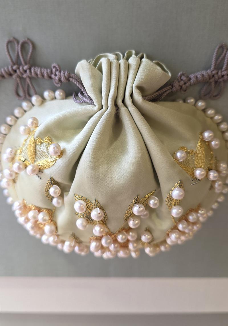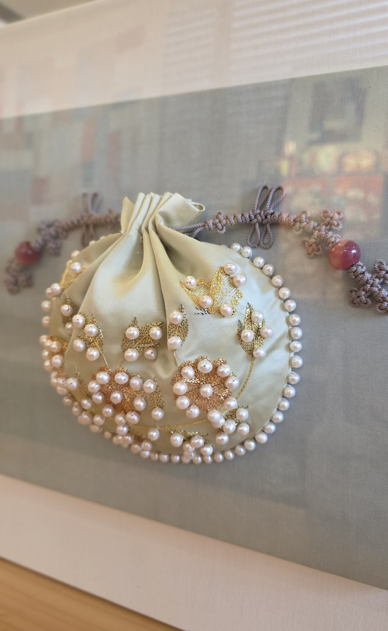 연한 녹두빛의 진주향낭 자체로도 우아하고 고급스럽지만