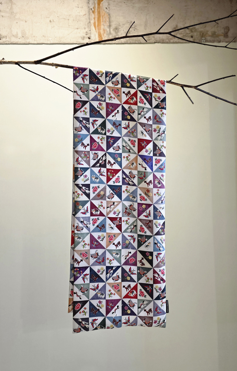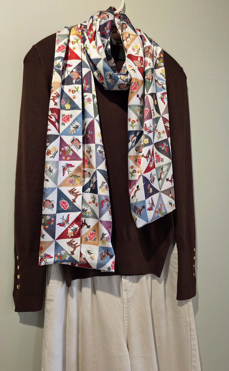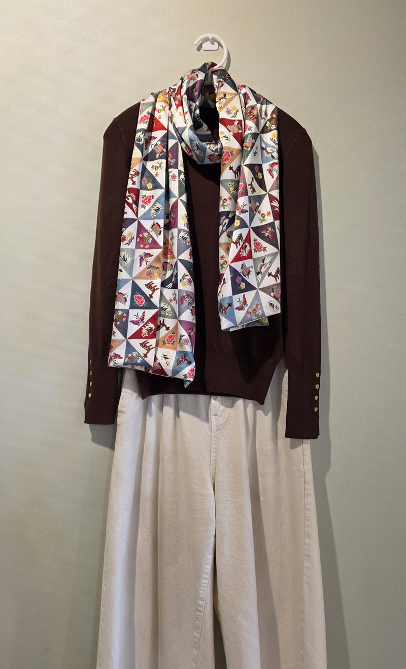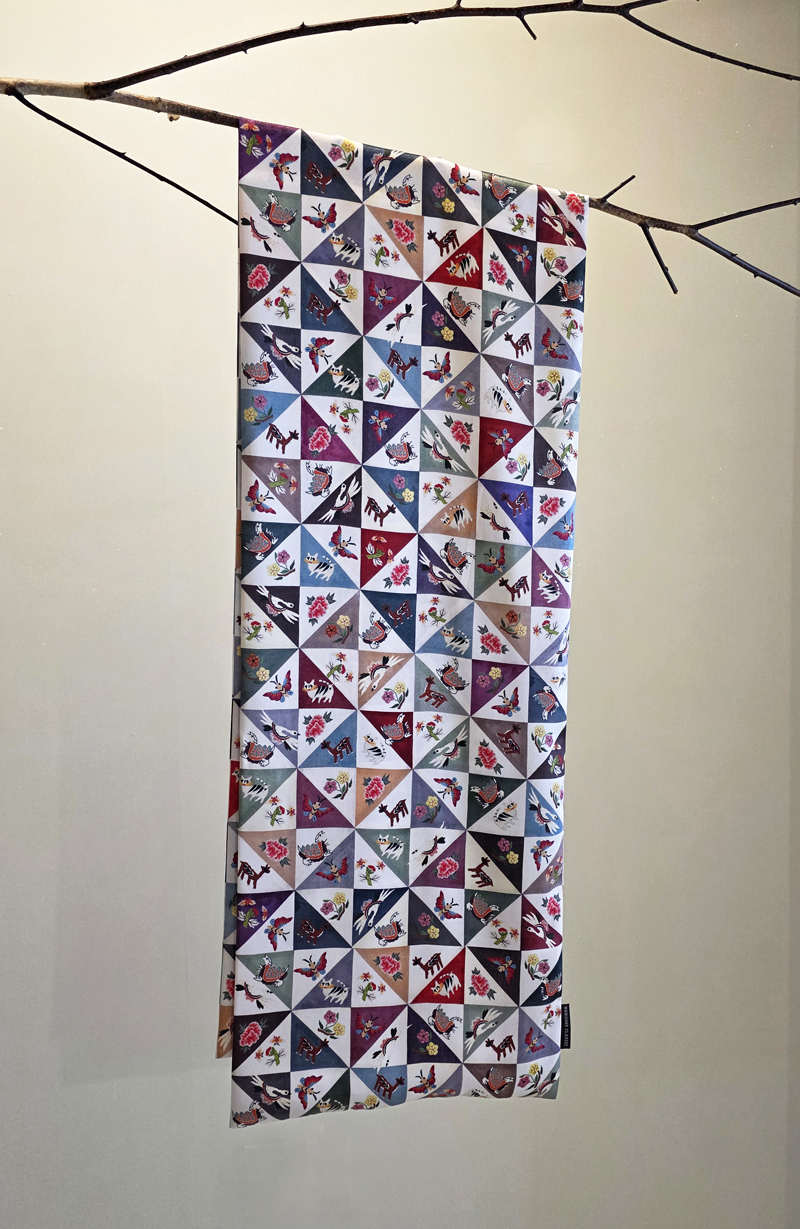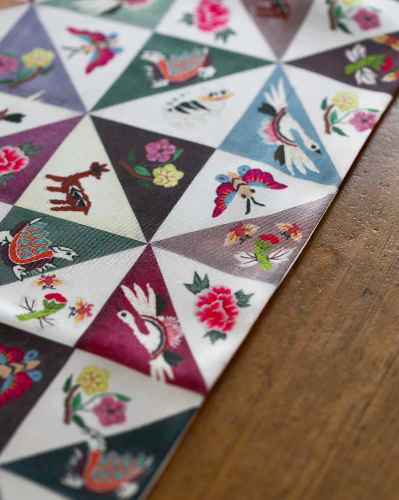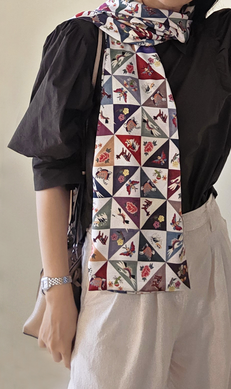 자수 조각보 프린트 공단 스카프jogakbo print scarf
