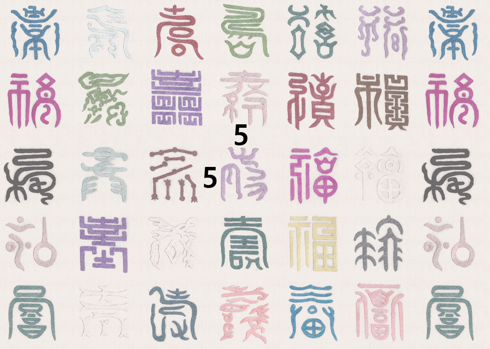 수복 壽福 문자도를 수놓은 옛자수보자기를