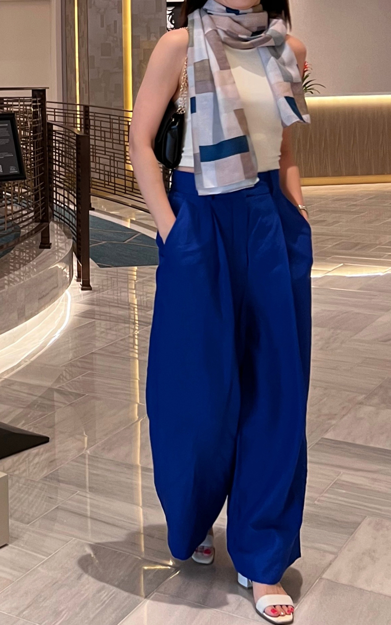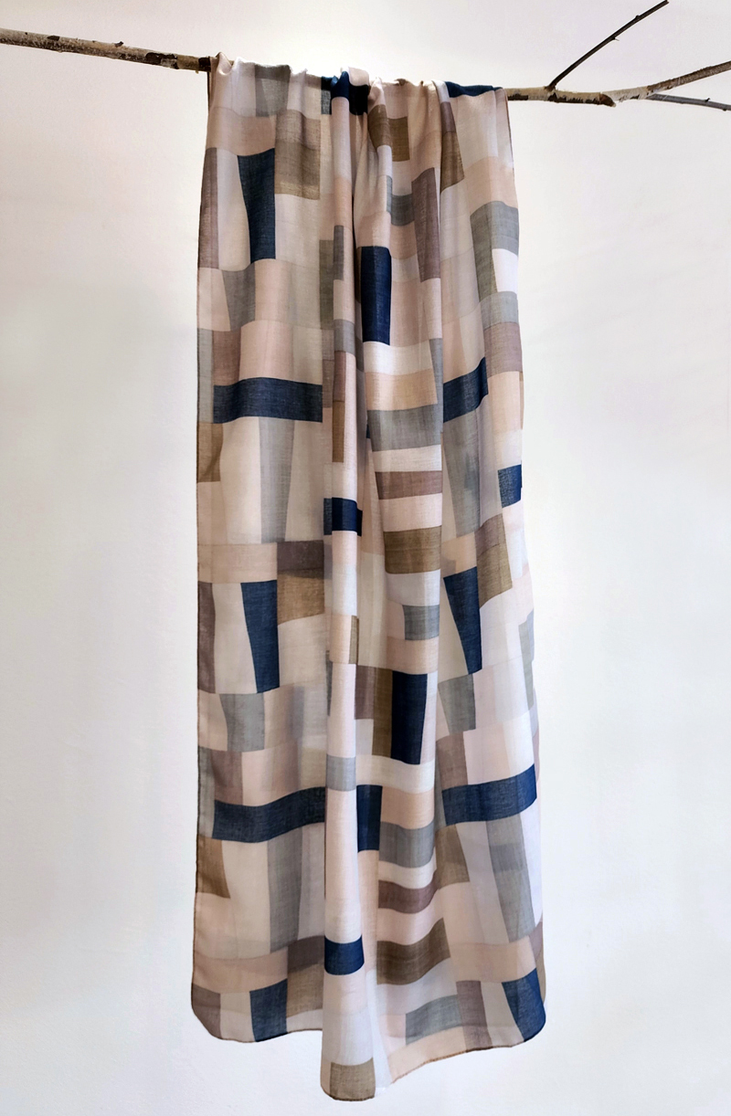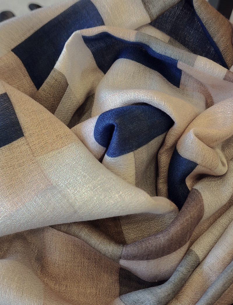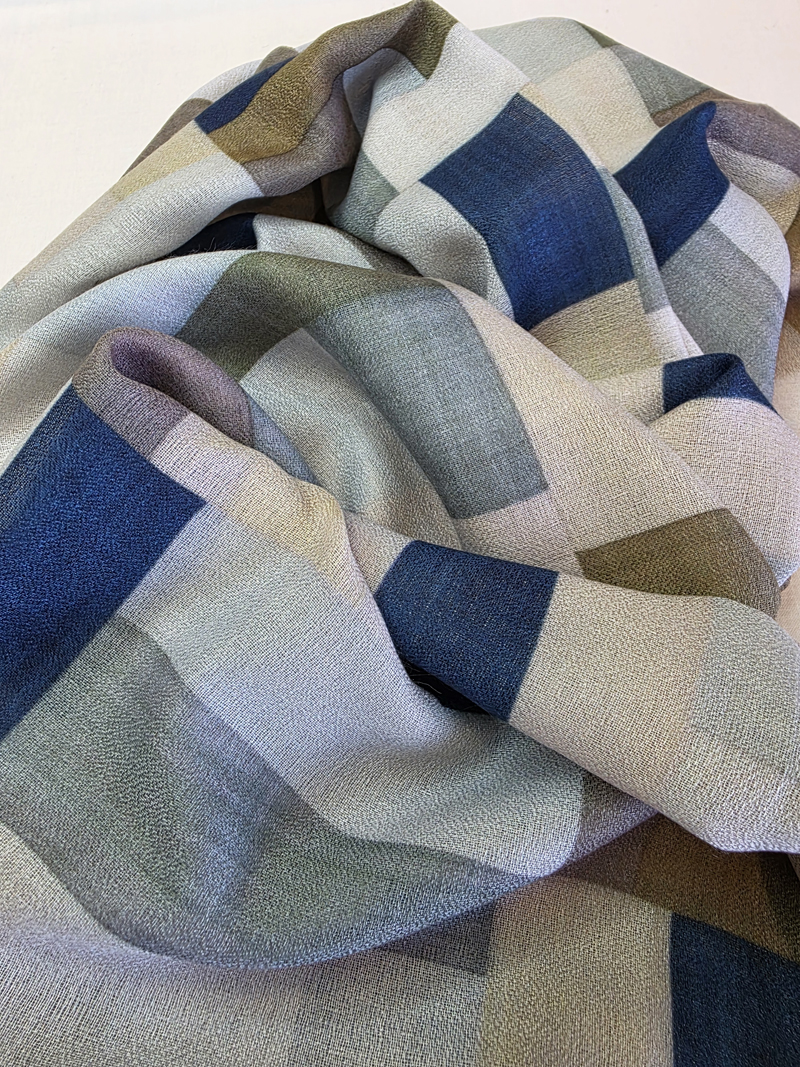 폭70cm x 길이210cm의 스카프를길이로 반 접은 상태입니다.한 겹상태의 스카프는 살짝 비침이있습니다.